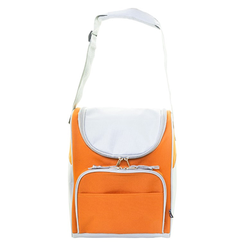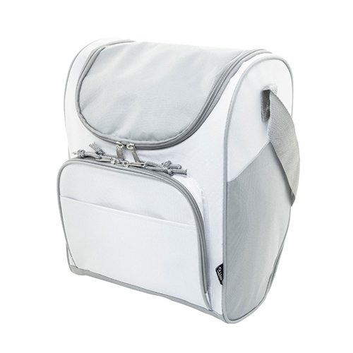 Recikliran 600D RPET poliester, dva ločena predela z zadrgo, sprednji žep in nastavljiv trak za nošenje