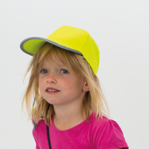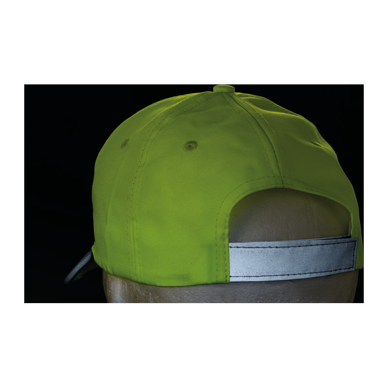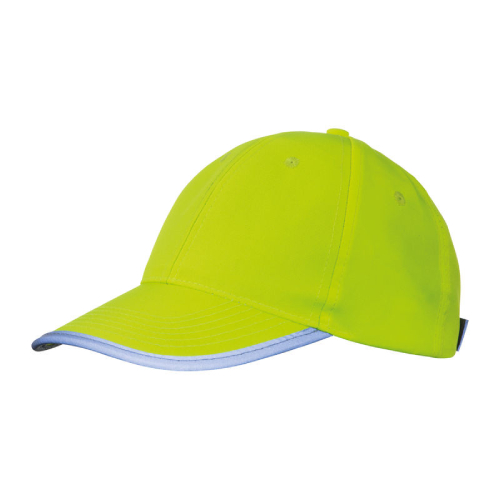 | • neon rumena • 6 obšitih luknjic za zračenje • ukrivljen šilt z odsevnim trakom • odsevni trak na zadnji strani |