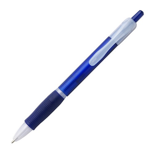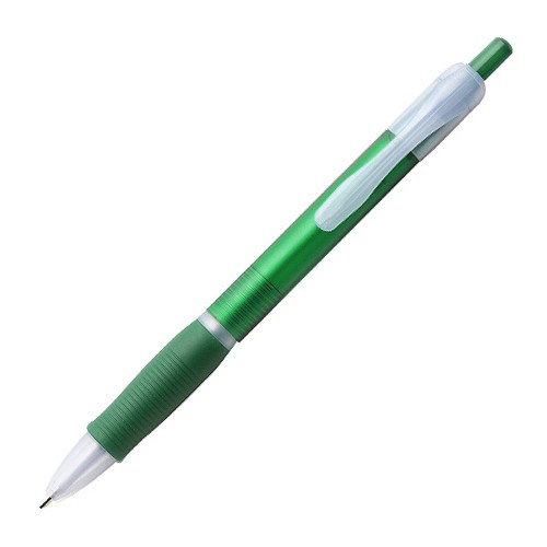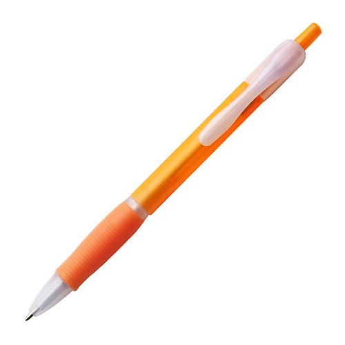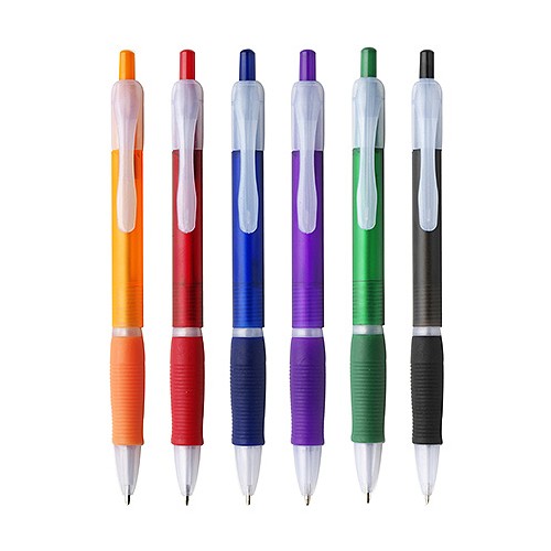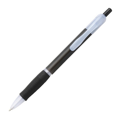 Plastični kemični svinčnik z narebričenim držalom in plastično zaponko.
