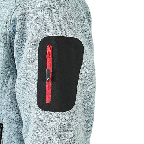 Kontrastni rob na ramenih in rokavih ter trendovski žep z zadrgo na rokavu