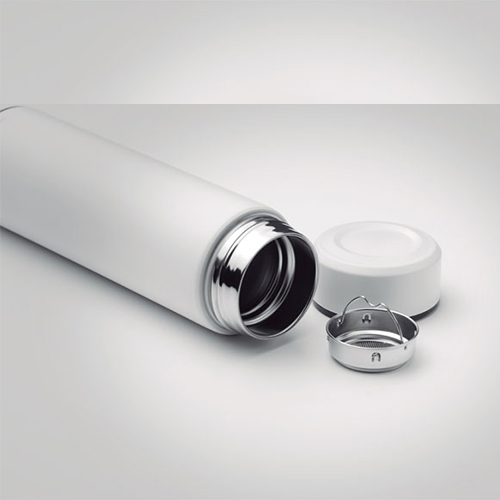 jeklena termo flaška z dvojno steno in cedilom za čaj, ki se ga lahko