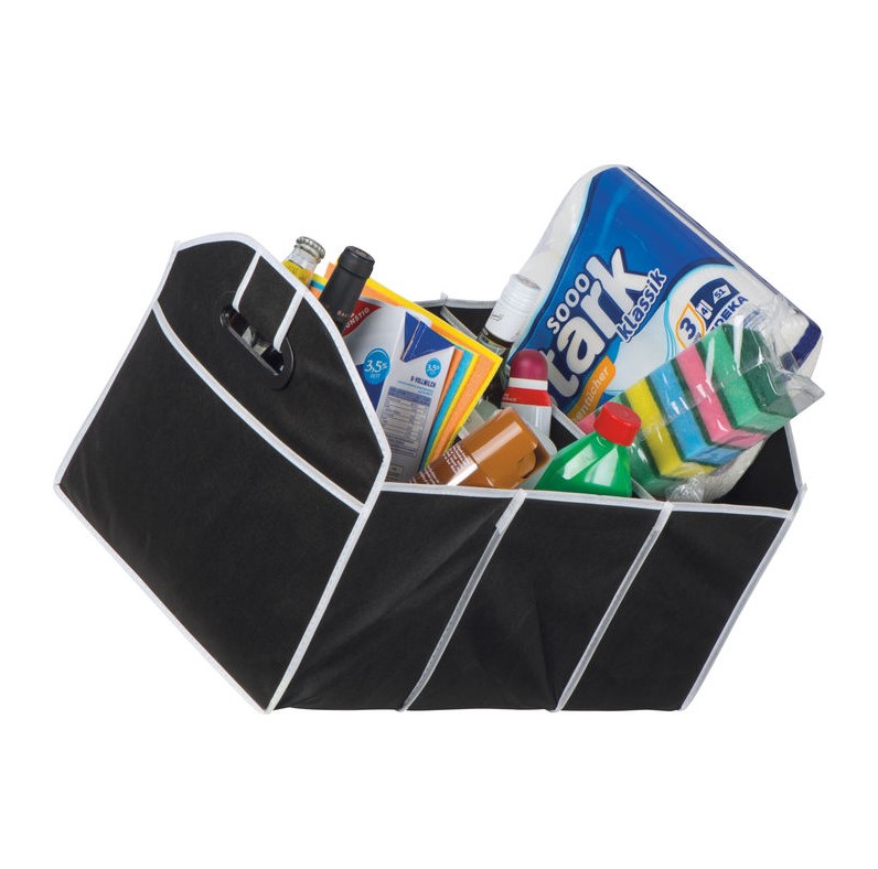 Zložljiva avtomobilska torba iz netkanega materiala za prtljažnik. Ko je zložena, prihrani prostor; ko je razprta, ponuja popoln prostor za vse vaše nakupe.